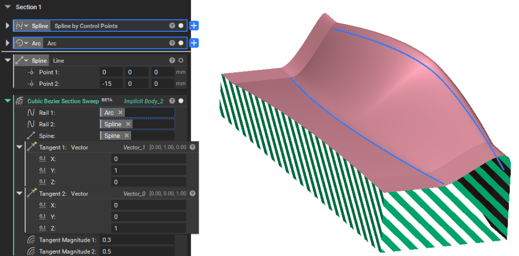 さらに接線のベクトルフィールドにより曲率を制御します。